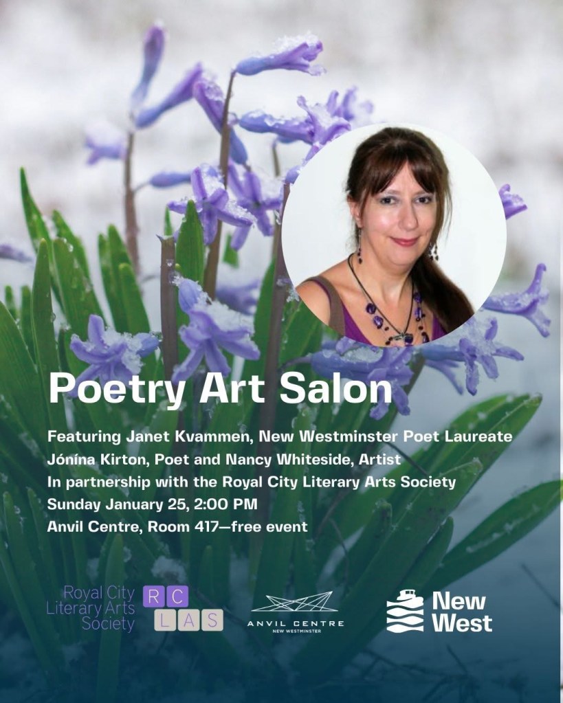Join Janet Kvammen, Poet Laureate of New Westminster, for a free afternoon of poetry readings, art “Show & Tell” chats and more! Come listen, share, and connect.