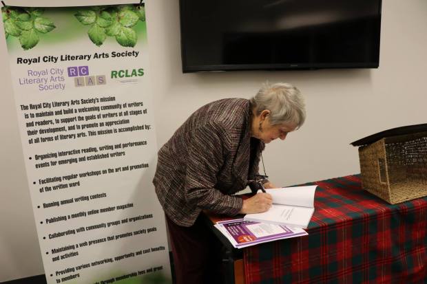 Evelyn was happy for write personal message in her books for those who purchased copies or brought this own copies to the Anvil Center.