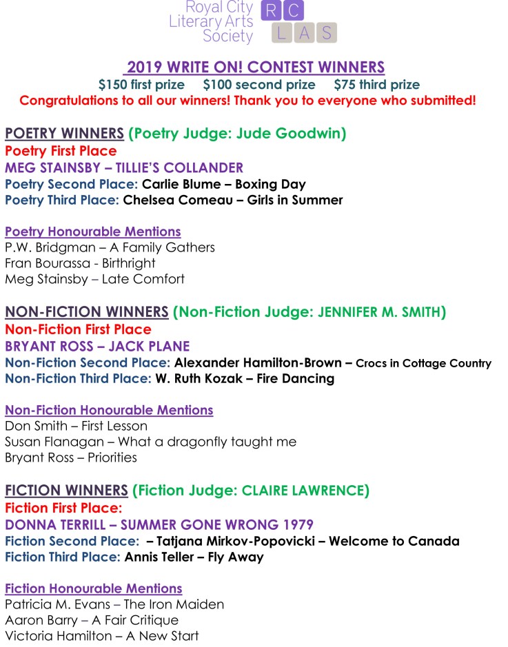 RCLAS Write on Contest 2019 WINNERS AND HM’s