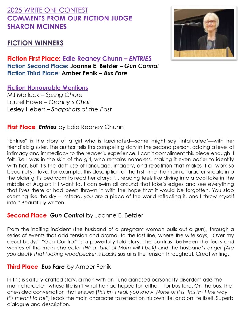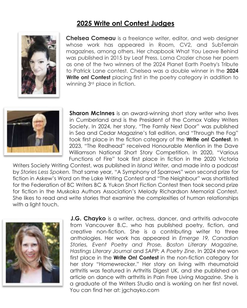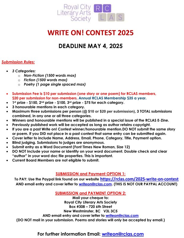 · If you are a past Write on! Contest winner/honourable mention.DO NOT submit the same story or poem. If you DID not place in a past contest that same entry can be submitted again.