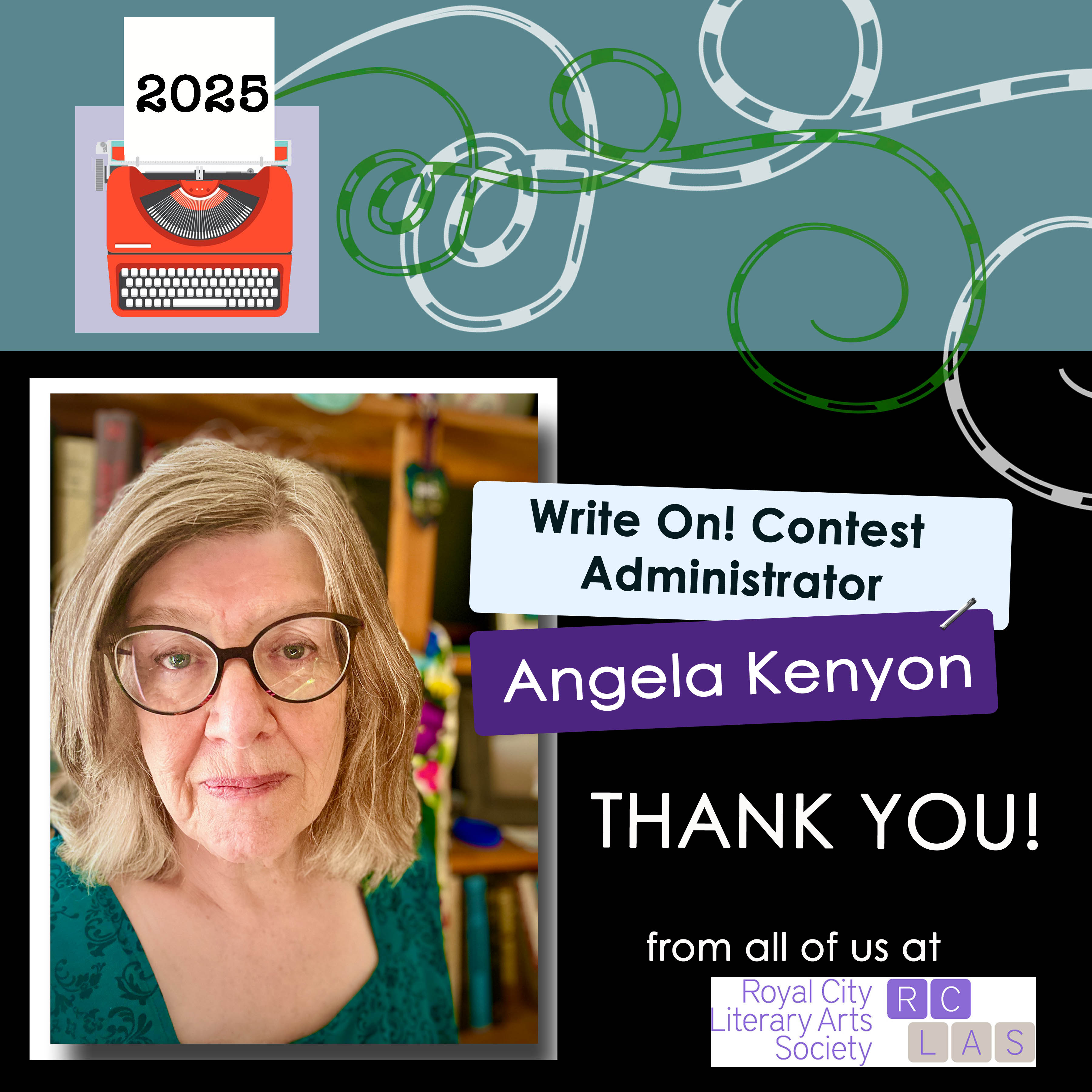 Hi all, I hope to get the Write on Contest results out soon —- watch this space and our website. Thanks for your patience. I will be working on some announcement posters etc….BUT In the meantime, please let me send out a huge Thank you to Angela Kenyon for all her hard work behind the scenes as the Write on! Contest administrator. Sadly Angela will be leaving the RCLAS BOD after our next AGM which is coming up sometime in late July (the date has yet to be set). You have no idea how sorry I am to see her go. She has played an amazing role in our organization and her contributions have been invaluable. I am forever indebted.