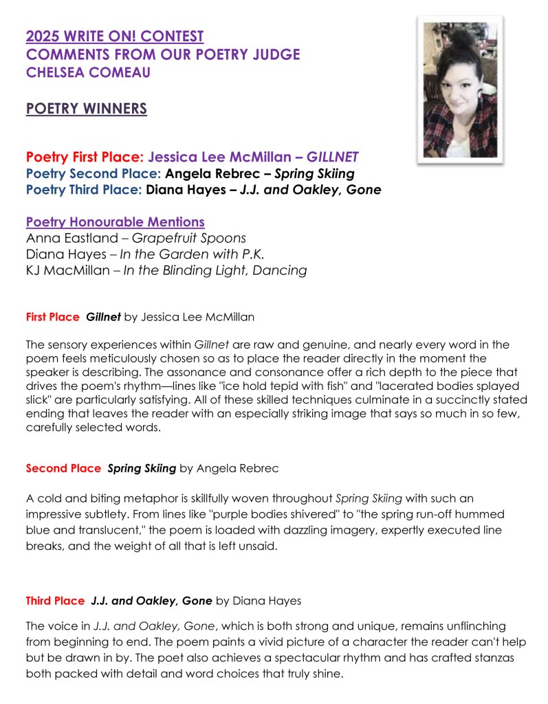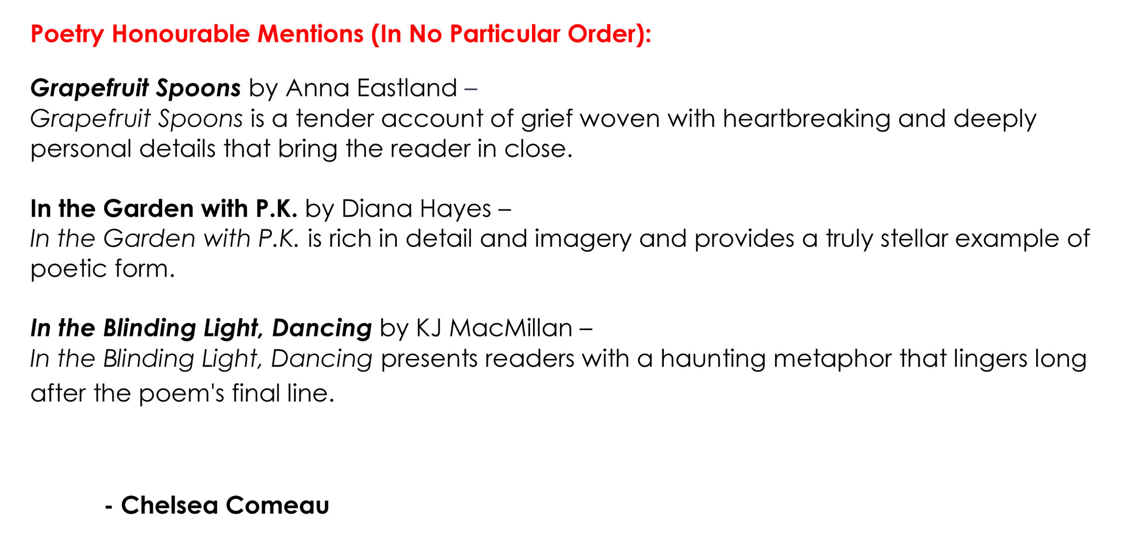 POETRY WINNERS (Poetry Judge: CHELSEA COMEAU)