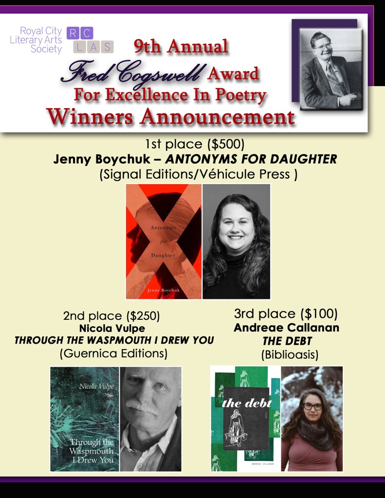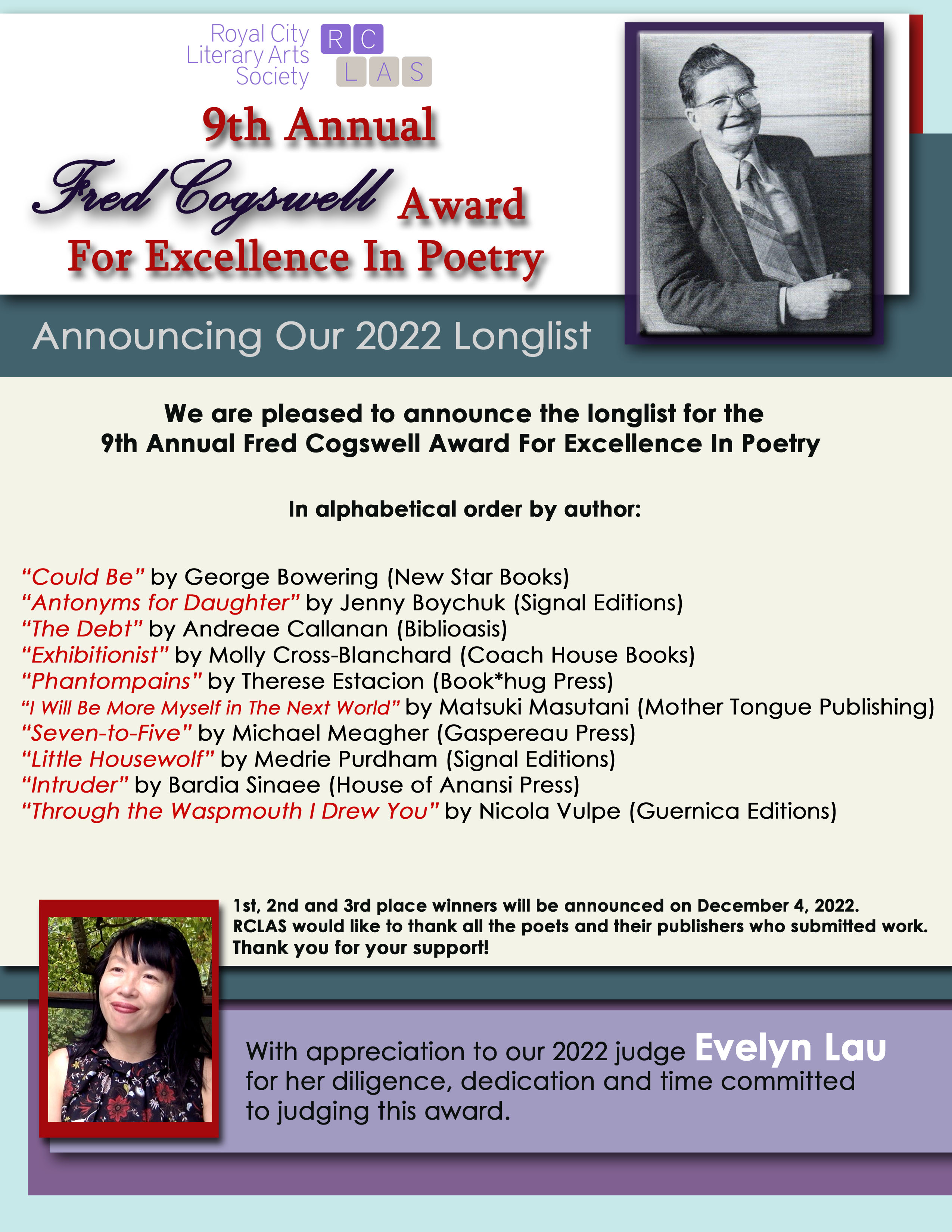 We are pleased to announce the longlist for the 9th Annual Fred Cogswell Award For Excellence In Poetry