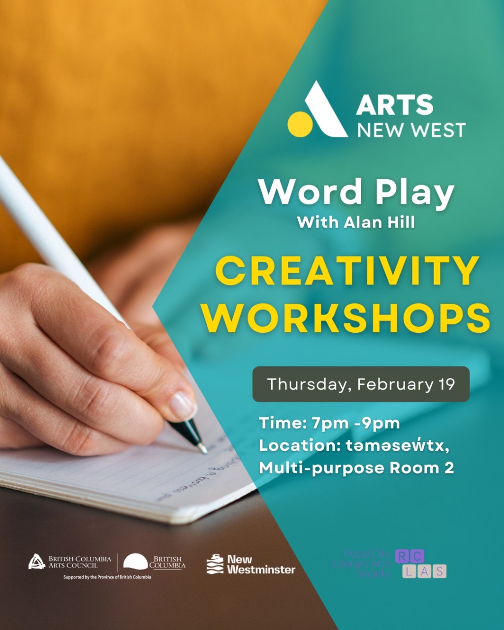 In Partnership with Arts New West, City Of New Westminster & Royal City Literary Arts Society